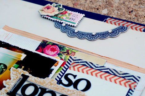 I decided to punch edges for my pages and used my favorite MS doily punch to do so. For the inside pages, I kept the design pretty simple. On the left side I added a few emebellishments and then my journaling. On the right side I used tags from the Pretty Party line, a piece of border sticker and a button. I backed the die cut numbers on the page with paper from Pretty Party, too.