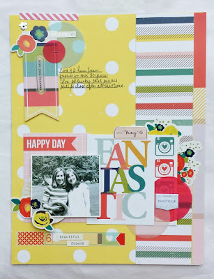 This next spread is the one I am going to use this week. I added some paper strips from the Memorandum paper pad and the number stickers from the Simple Stories sticker set. I had to add the cute eyelash stickers just because. The card is from the Life's Pages kit and I added the stickers and little clip.